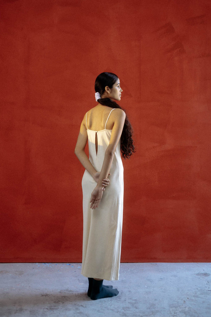 Crafted from the finest stretchable silk crepe, this slip dress simplifies beauty, enhancing natural curves with its effortless elegance. It's a timeless piece that epitomises feminine grace with a minimalist approach.